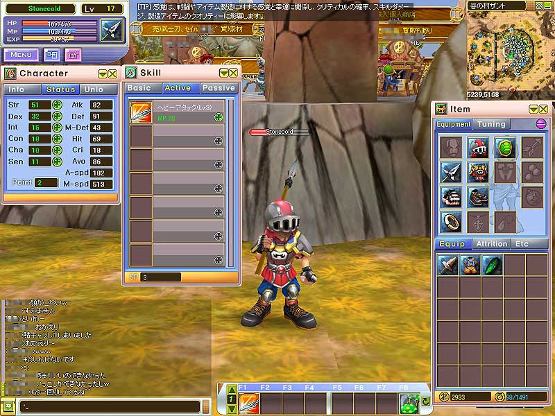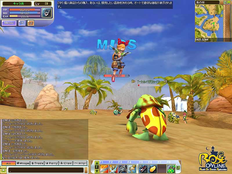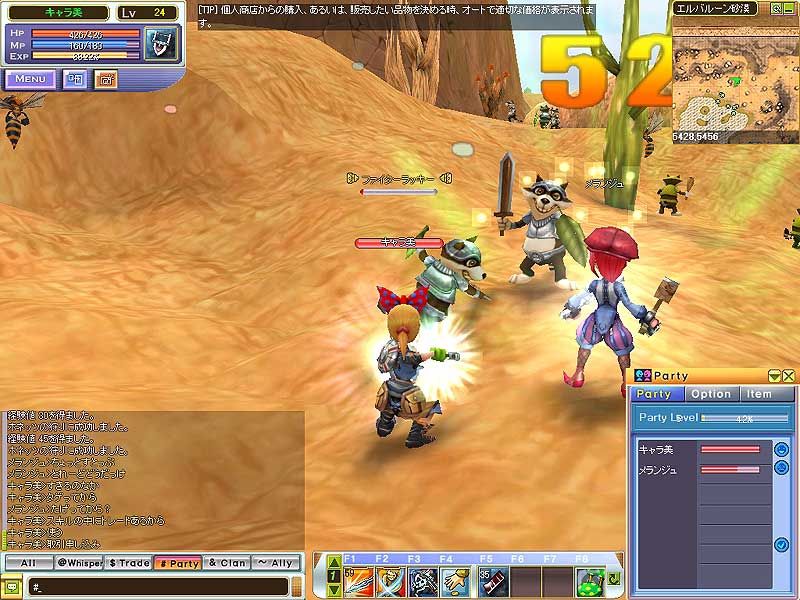 「FFXI」みたいにパーティー必須じゃないし、「コルム オンライン」みたいに狩りにストレスは感じない。タヌキに飽きたらカメ、カメに飽きたら半漁人。半漁人に飽きたらキツネ。黄色ネームを乱獲するが、たまにオレンジネームに挑戦したり。