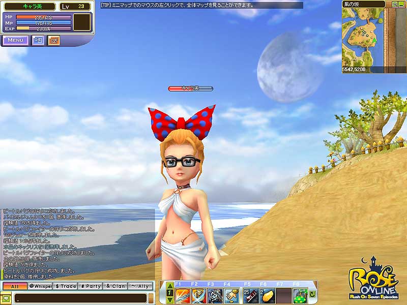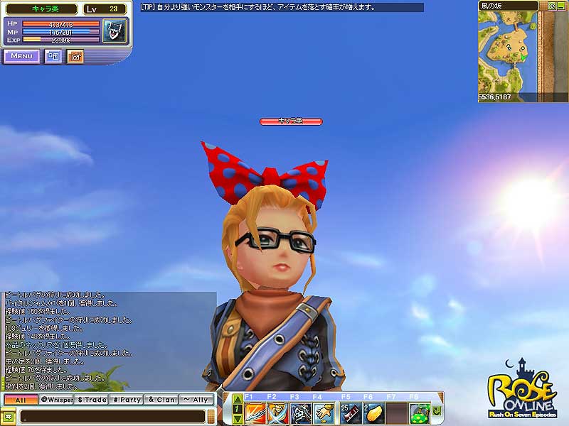 Tさんも「Rose Online」を始めてくれた。キャラクター名はメランジュ。サングラスにベレー帽というスパイファッションの女の子。先にLV10になってミューズ(魔法使い)になっていたのだが、すぐに追いついて若干追い越したホカーのキャラ美。