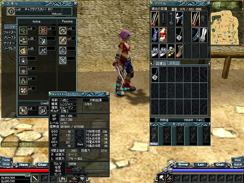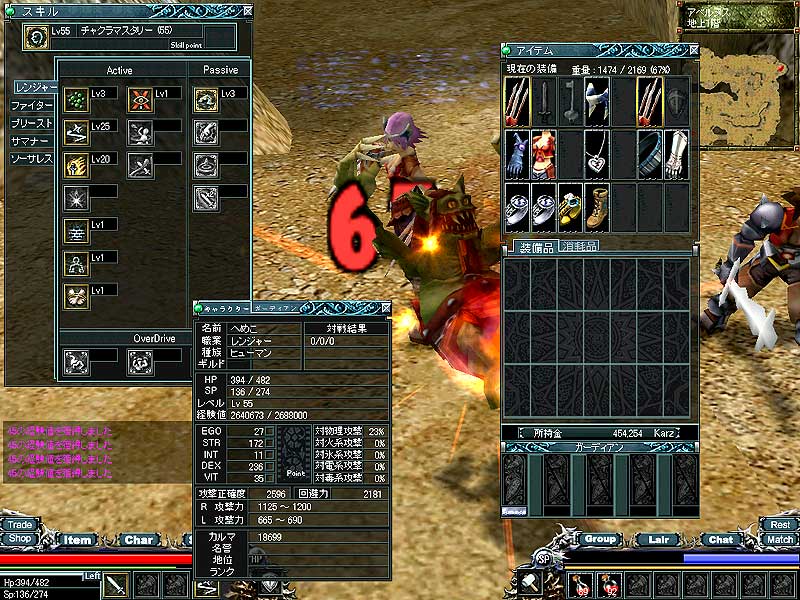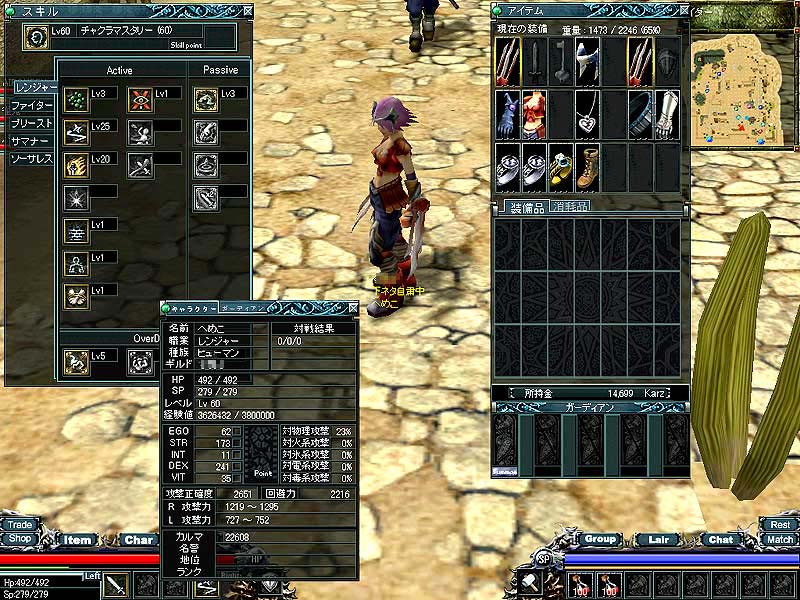 レンジャースキルの「カタールマスタリー」を覚える。これを覚えると、カタールの攻撃力が上がるのだ。試して見ると、50ダメージくらい強くなった。